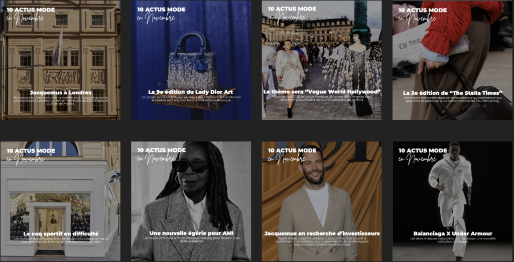 Je parle bien sûr du podcast, de mon compte TikTok, mais je publie aussi une fois par mois des actualités mode.